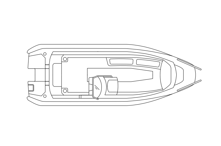 На лодке РИБ Фортис 740 рецесс совмещен с большим кормовым рундуком, служащим одновременно хранилищем и сиденьем